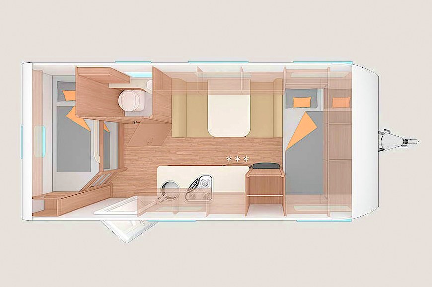Przyczepa kempingowa WEINSBERG CaraOne 480 QDK jest bardzo komfortowa dla dużych rodzin. Dużą zaletą tego modelu jest niskie DMC – tylko 1300 kg (można ją podpiąć do auta osobowego o DMC aż 2200 kg!), przy ładowności do 170 kg. Długość całkowita (z dyszlem) przyczepy wynosi 719 cm, bez dyszla to ponad 5 metrów przestrzeni mieszkalnej. Dzięki najlepszemu z możliwych zawieszeniu firmy AL-KO oraz stabilizatorowi jazdy ciągnięcie tej przyczepy to czysta przyjemność.